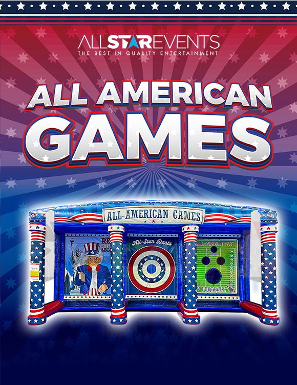 Bring classic carnival fun to your patriotic celebration with the All American Games inflatable rental. Featuring multiple interactive carnival-style challenges, this attraction is perfect for Fourth of July festivals, corporate events, school carnivals, city celebrations, and community gatherings across Miami...