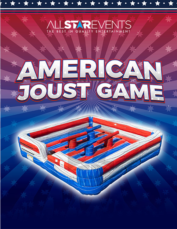 Add competitive excitement to your patriotic event with the American Joust inflatable rental. Players safely battle using foam jousting sticks inside a red, white, and blue inflatable arena. Perfect for corporate events, festivals, school celebrations, military appreciation events, and Fourth...